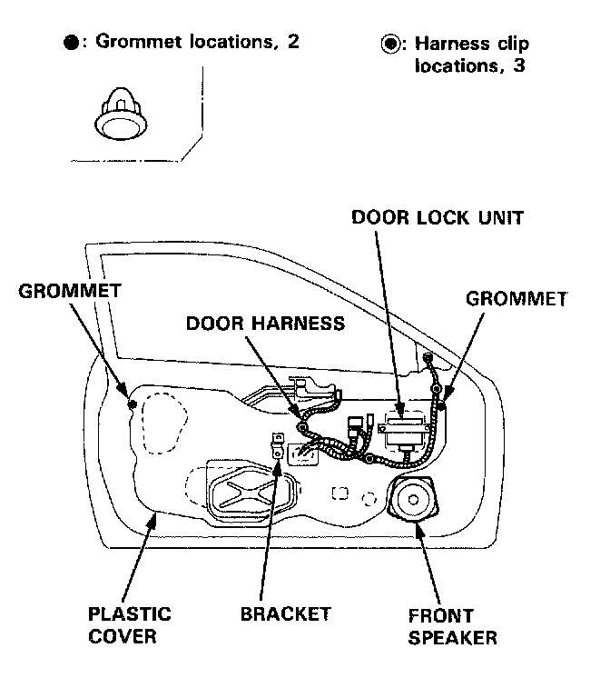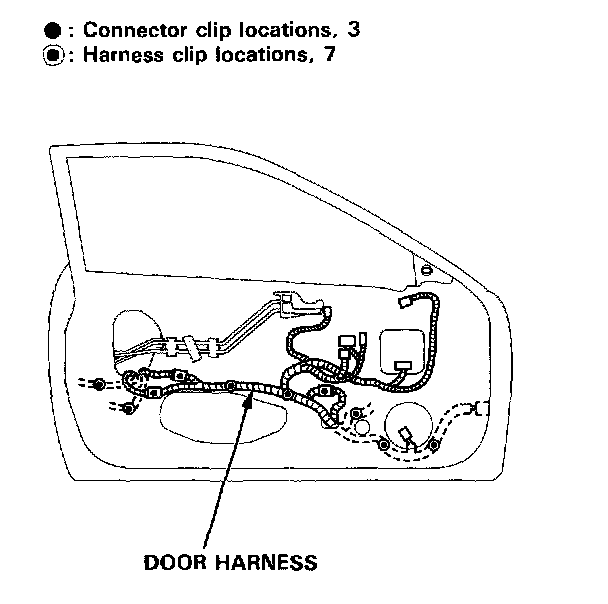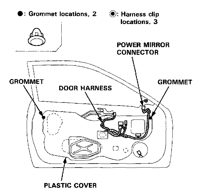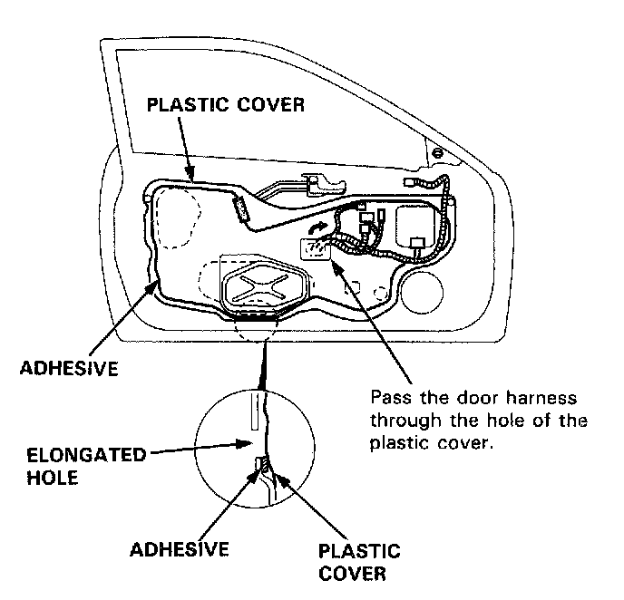 9. Before installing the plastic cover, make sure the door harness and connectors are fastened correctly on the door.