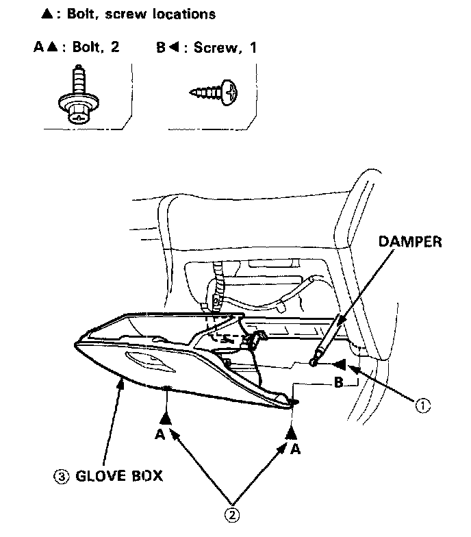 2. Remove the screw, then remove the damper from the glove box.