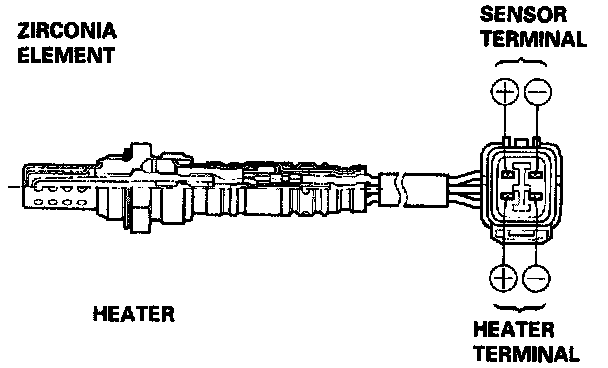 The Heated Oxygen Sensor (HO2S) detects the oxygen content in the exhaust gas and signals the ECM. In operation, the ECM receives the signals from the sensor and varies the duration during which fuel is injected. To stabilize the sensor's output, the sensor has an internal heater and the sensor element is coated with a catalyst. The HO2S is installed in TWC housing (B18C1, B18C5 engines) or exhaust pipe B (B18B1 engine).
