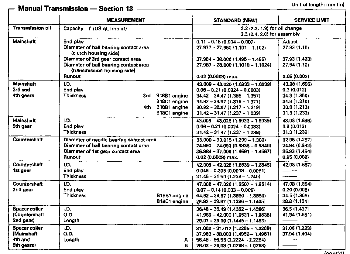 S80 5-spd M/T, Transmission Measurement: