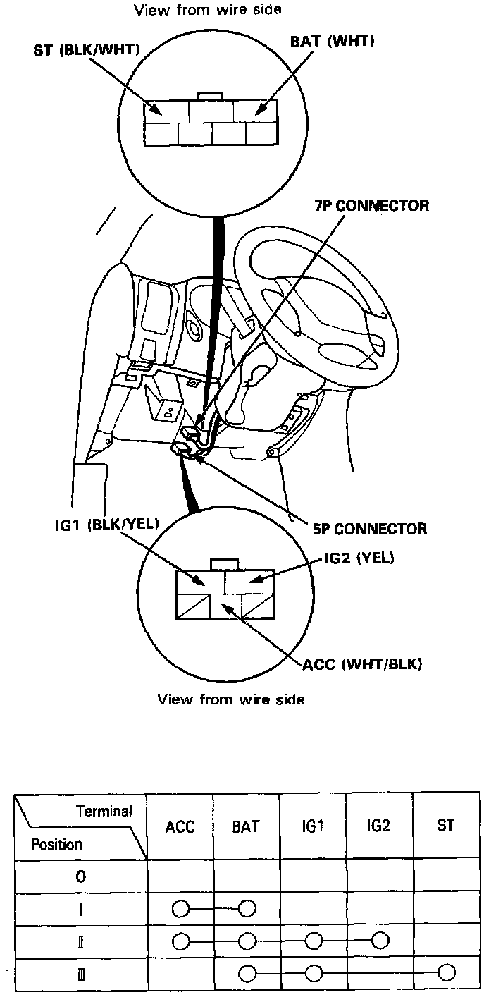 2. Disconnect the 5-P connector from the under-dash fuse/relay box and the 7-P connector from the main wire harness.
