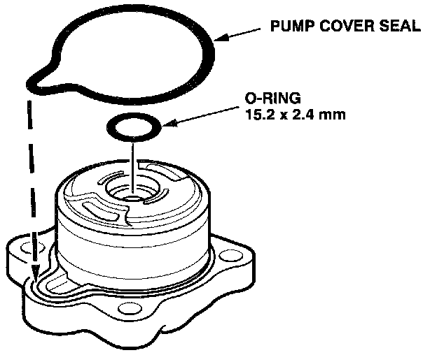12. Coat the pump cover seal with power steering fluid, then install the seal in the pump cover.