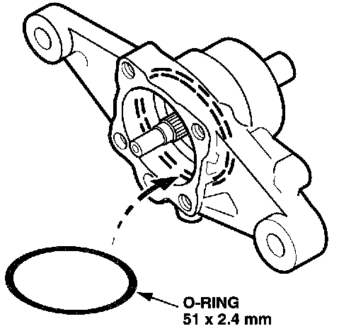 13. Coat the 51 x 2.4 mm 0-ring with power steering fluid, then install it in the pump housing.