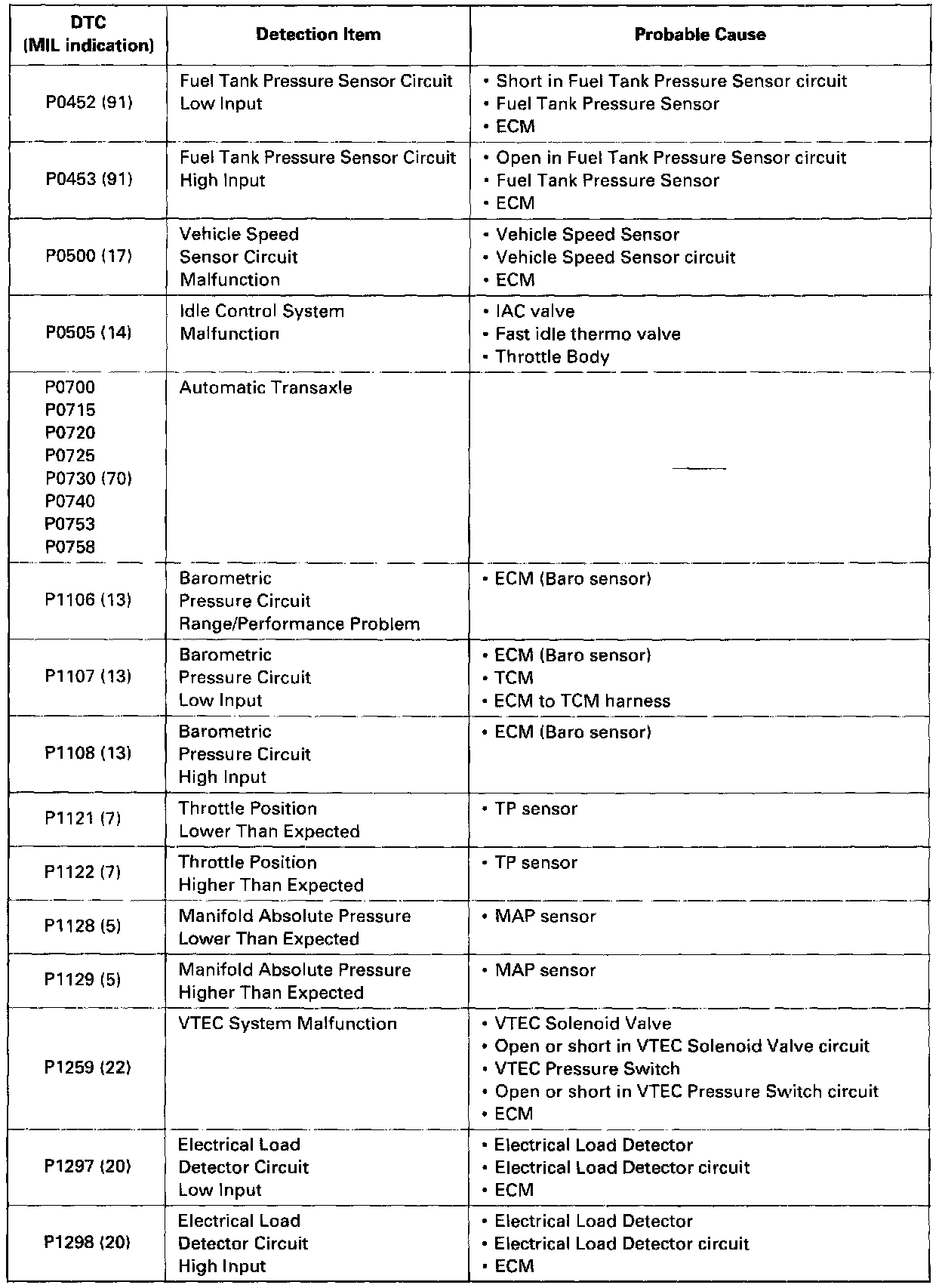 Codes P0452 Thru P1298: