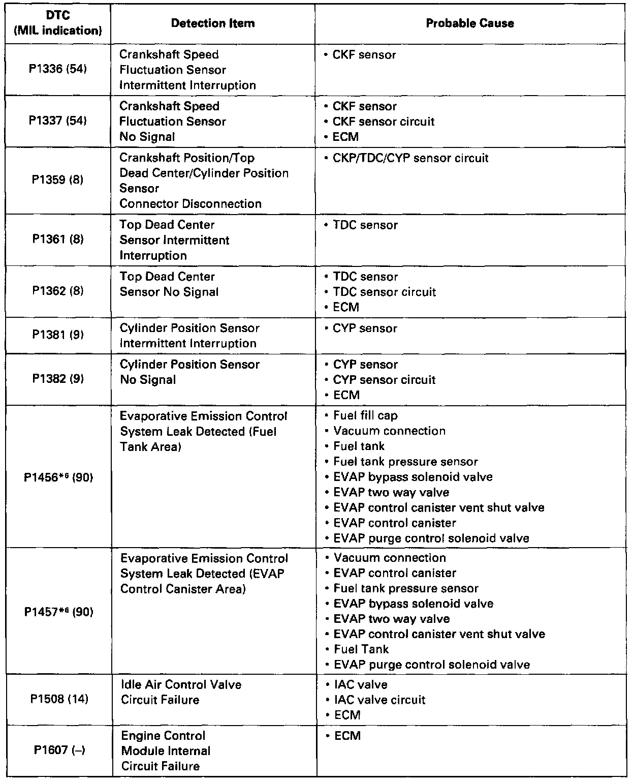 Codes P1336 Thru P1607: