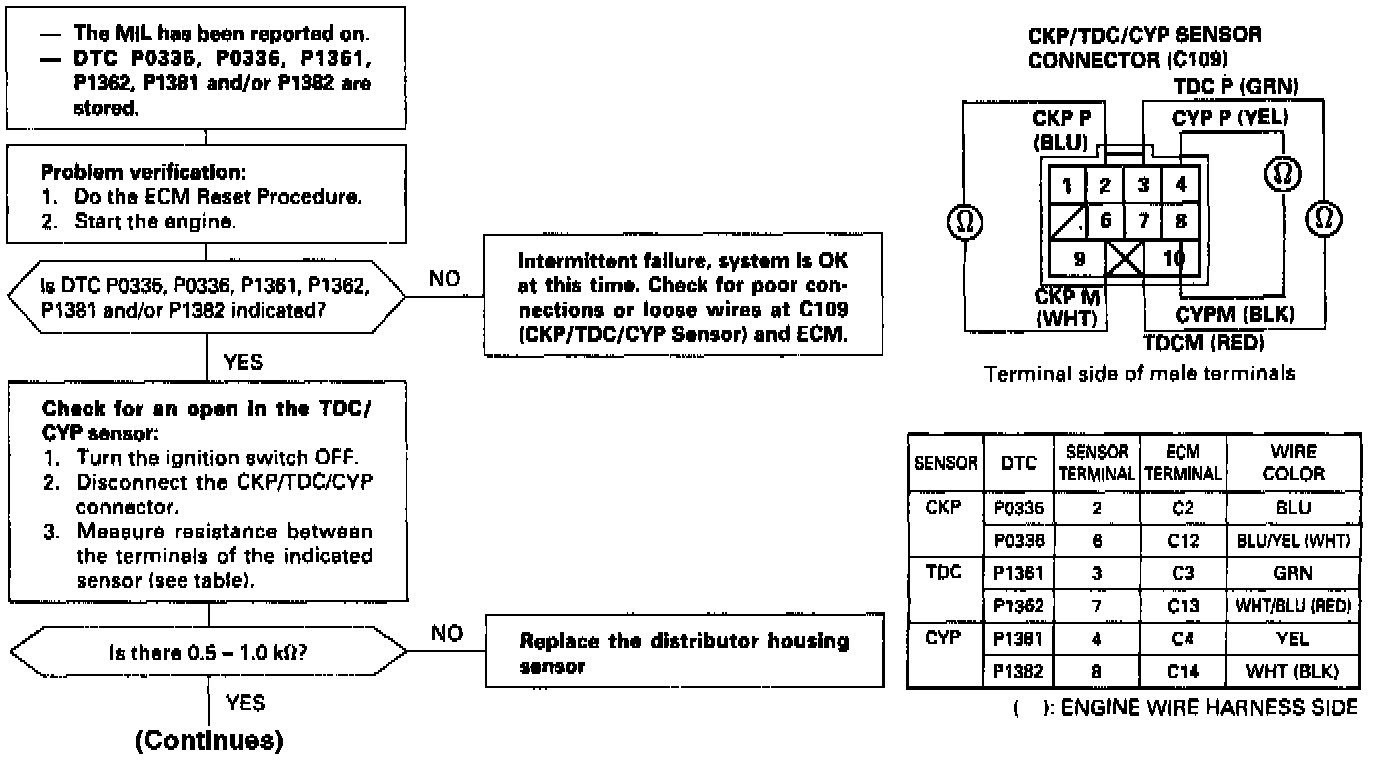 NOTE: If DTC P1359 is stored at the same time as DTC P0335, P0336, P1361, P1362, P1381 and/or P1382, troubleshoot DTC P1355 first, then troubleshoot those DTCs.