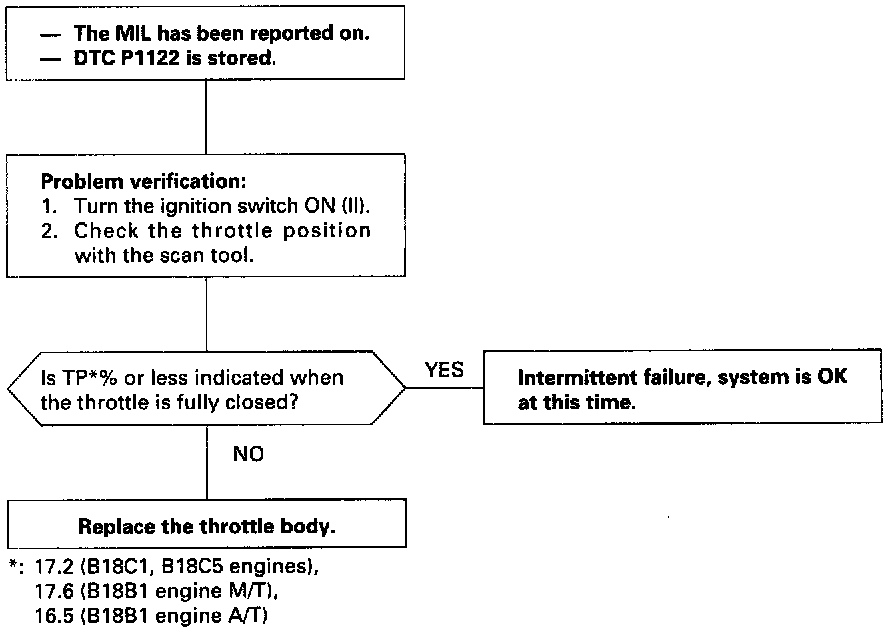 The scan tool indicates Diagnostic Trouble Code (DTC) P1122: Throttle Position (TP) higher than expected.