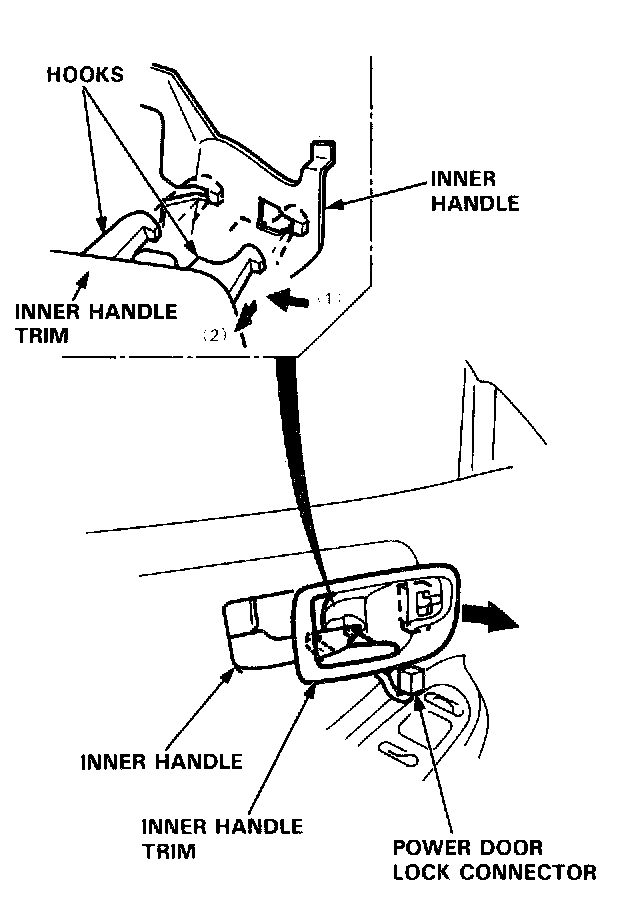 2. Remove the inner handle trim while pulling the inner handle. Disconnect the power door lock connector.