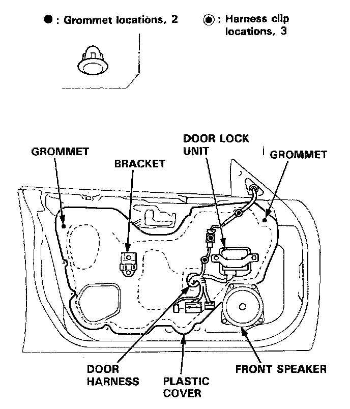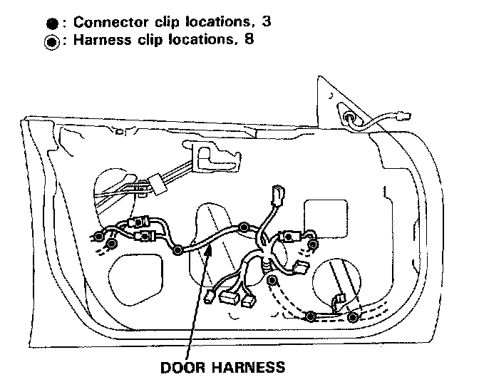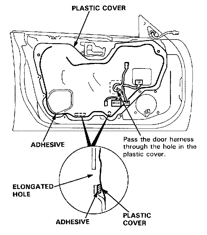 9. Before installing the plastic cover, make sure the door harness and connectors are fastened correctly on the door.