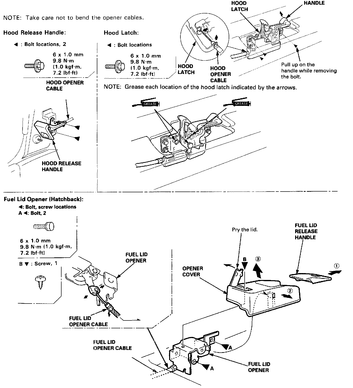 NOTE: Take care not to bend the opener cables.