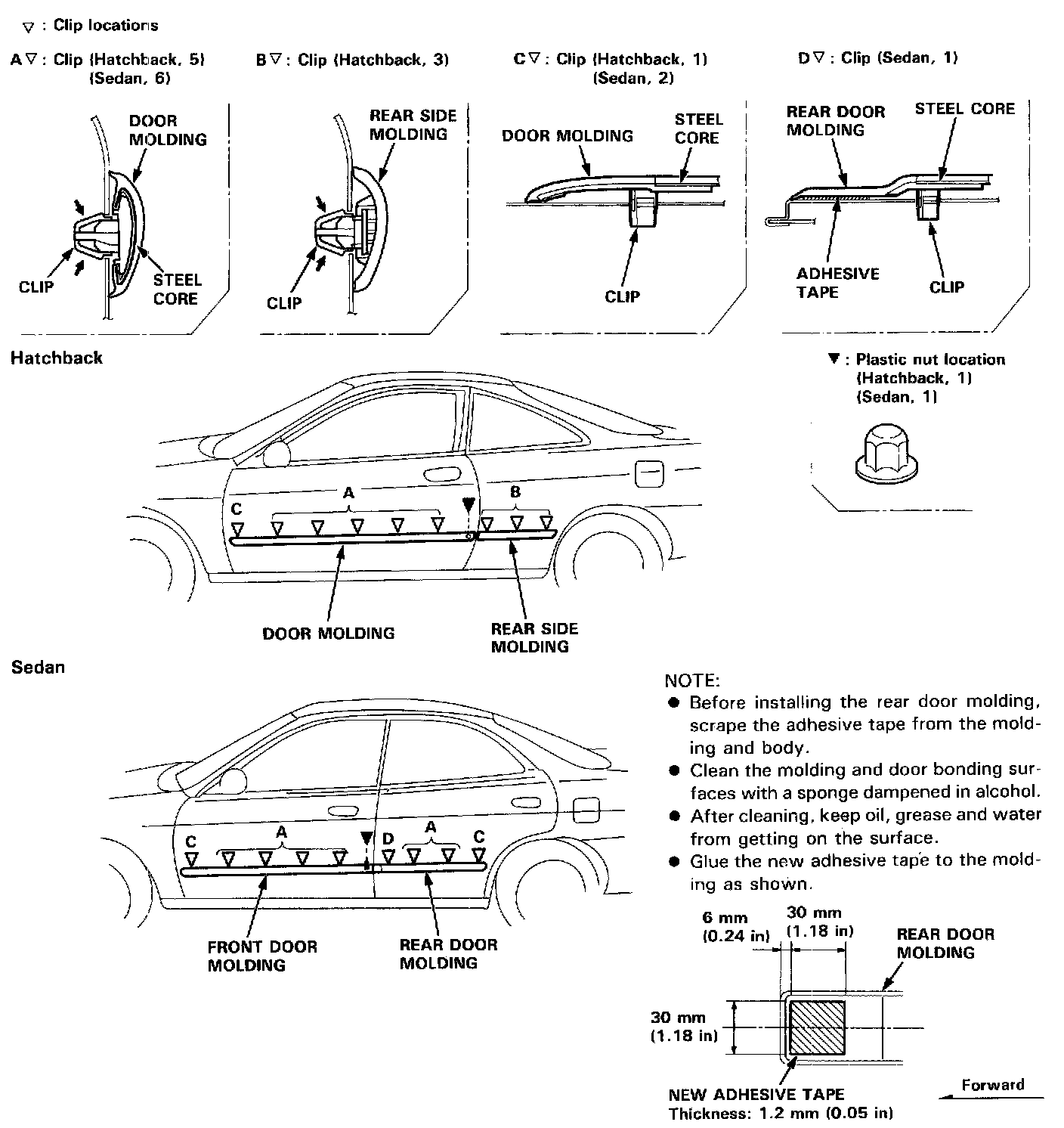 - The steel core in the door molding cannot be restored to its original shape once it is bent. Replace the door molding if the steel core is bent.