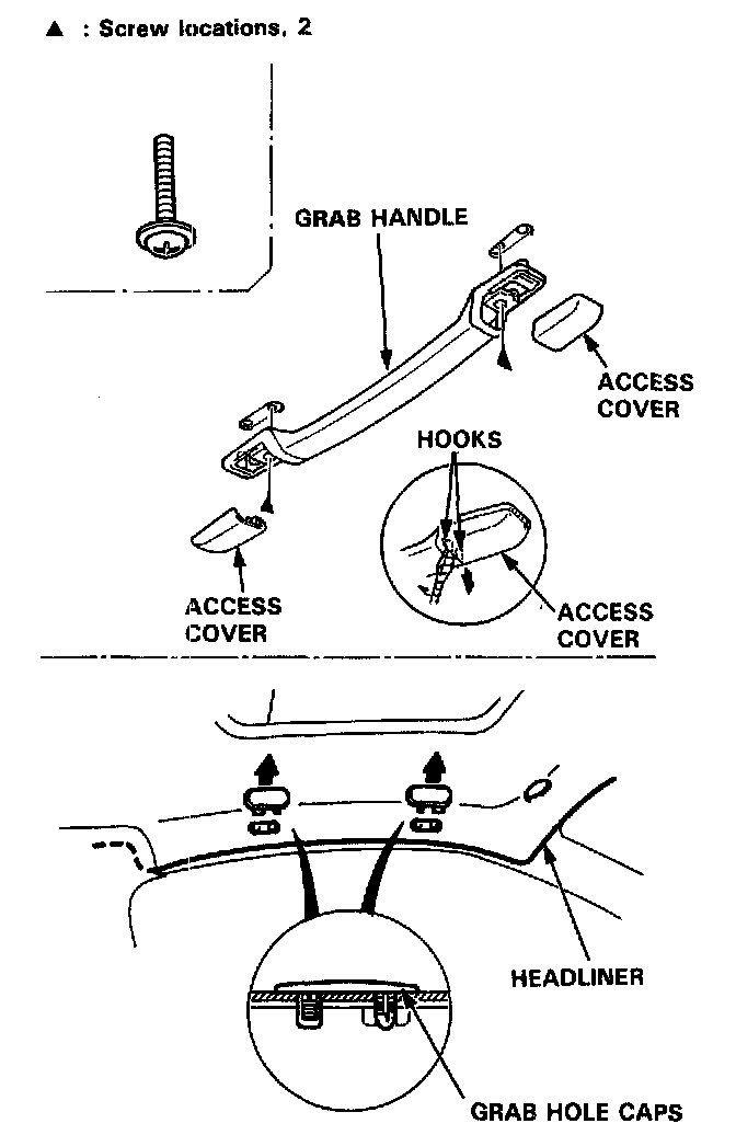 4. Remove the grab handle (front passenger's) and grab hole caps (driver's).
