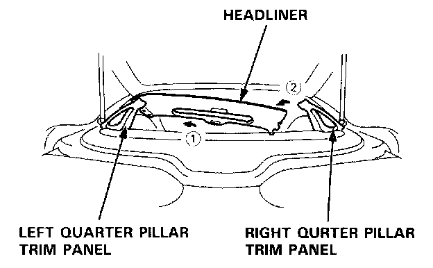 8. Remove the roof trim (moonroof model). Open the hatch, then remove the rear roof trim. Remove the headliner.