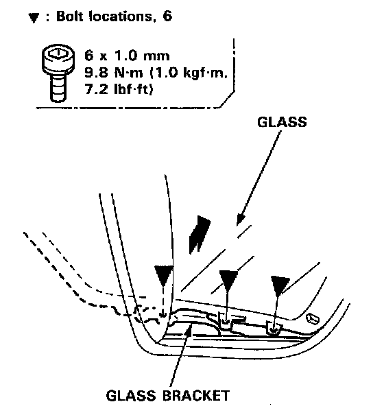 3. Remove the bolts, then remove the glass from the glass bracket.