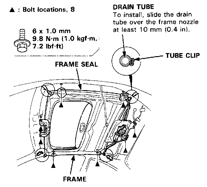 Motor, Drain Tube and Frame ReplacementCAUTION: Be careful not to damage the seats, dashboard and other interior trim.
