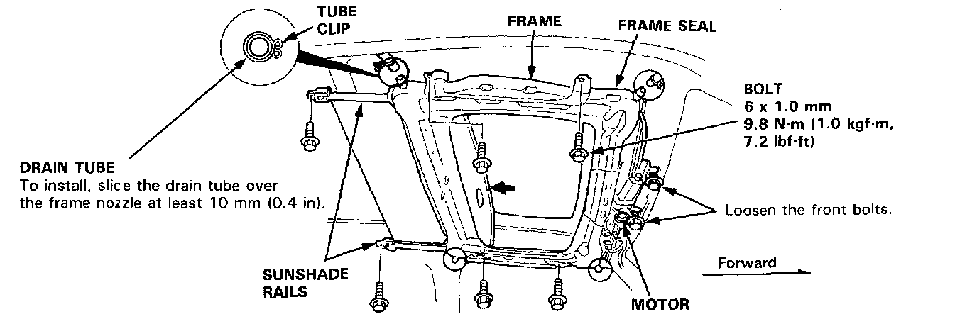 Motor, Drain Tube and Frame ReplacementCAUTION: Be careful not to damage the seats, dash-ward and other interior trim.