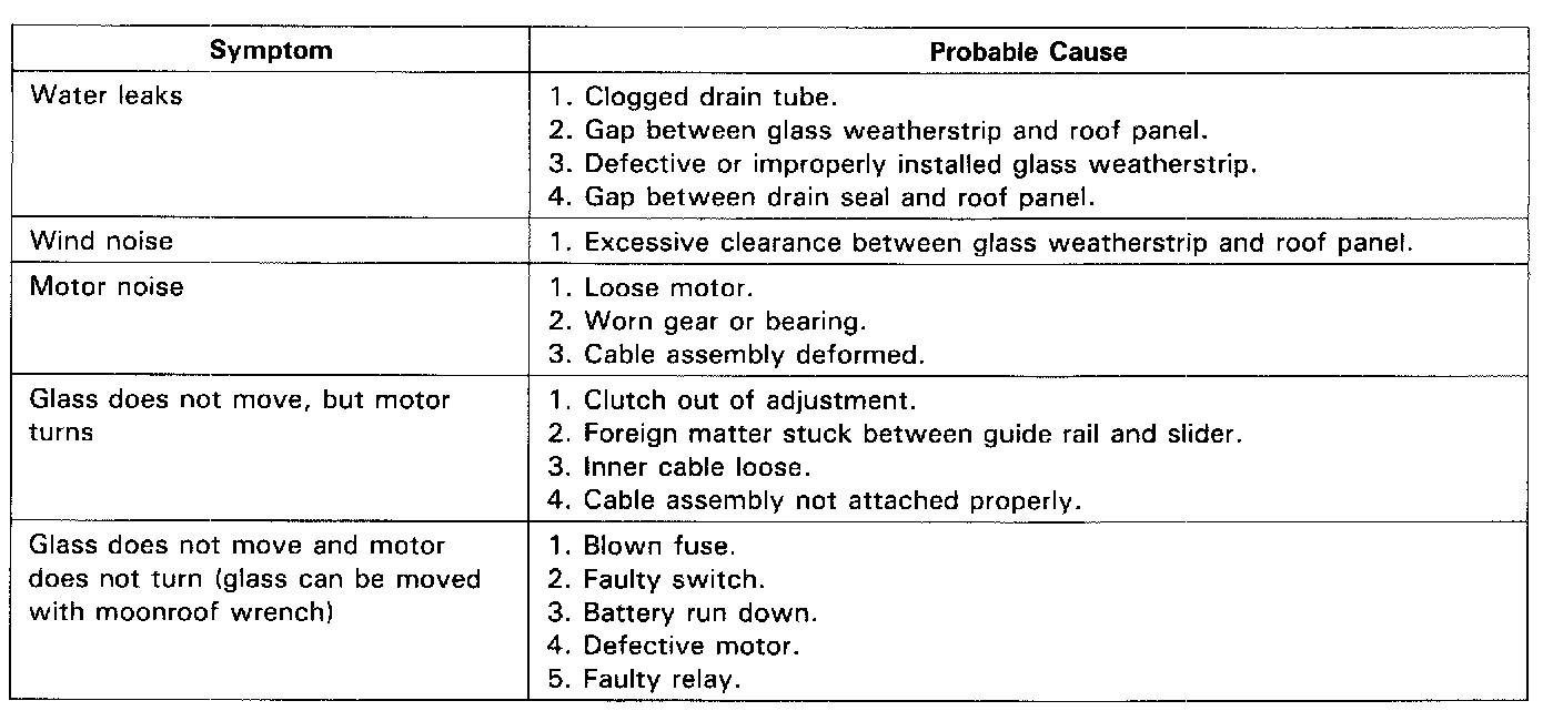Moonroof Troubleshooting - Sedan: