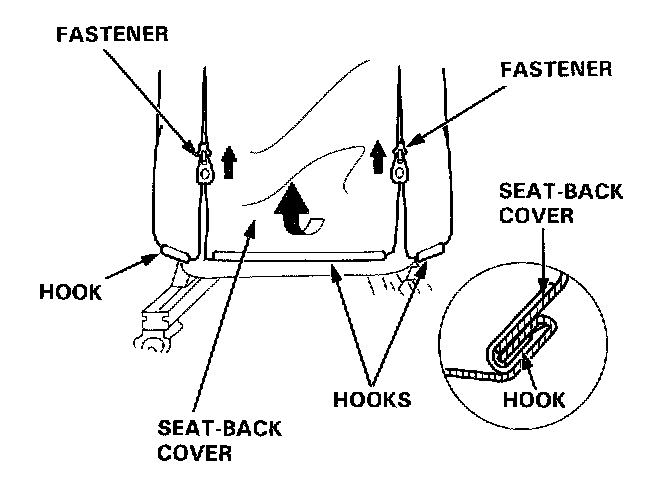 2. Remove the hooks and fasteners, then fold the seat-back cover back.