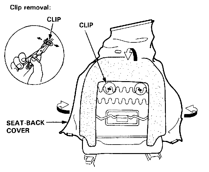 6. Pull back the edge of the seat-back cover all the way around, then release the clips.