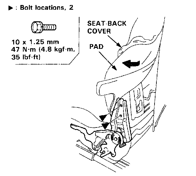 5. Fold the seat-back cover and pad, then remove the bolts.