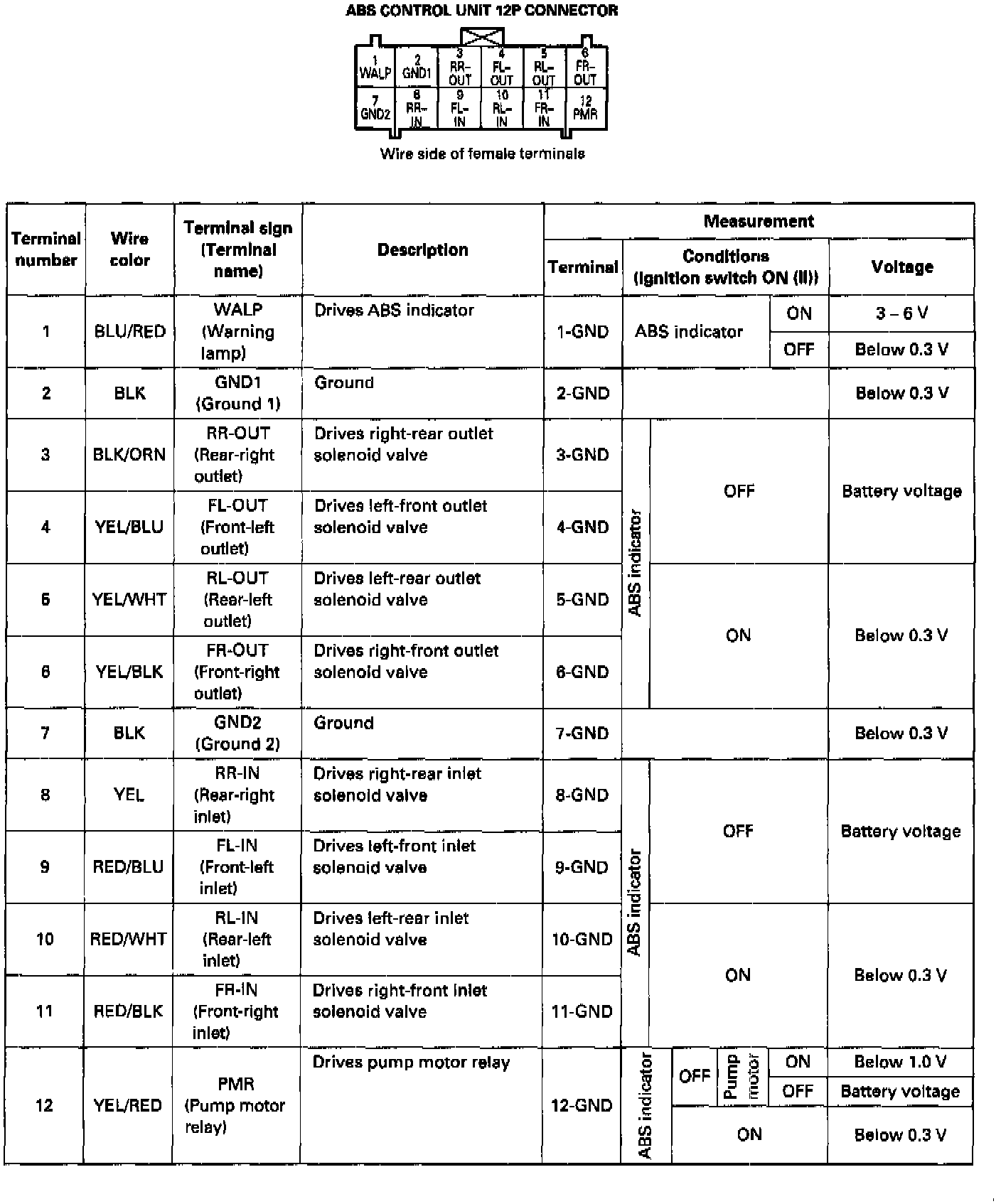 Pinout Values and Diagnostic Parameters