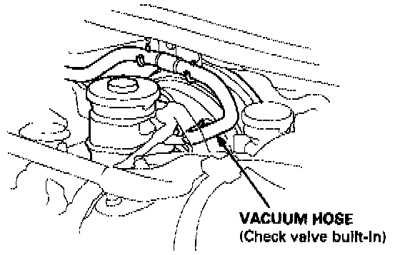 2. Start the engine and let it idle. There should be vacuum available. If no vacuum is available, the check valve is not working properly. Replace the brake booster vacuum hose and check valve, and retest.