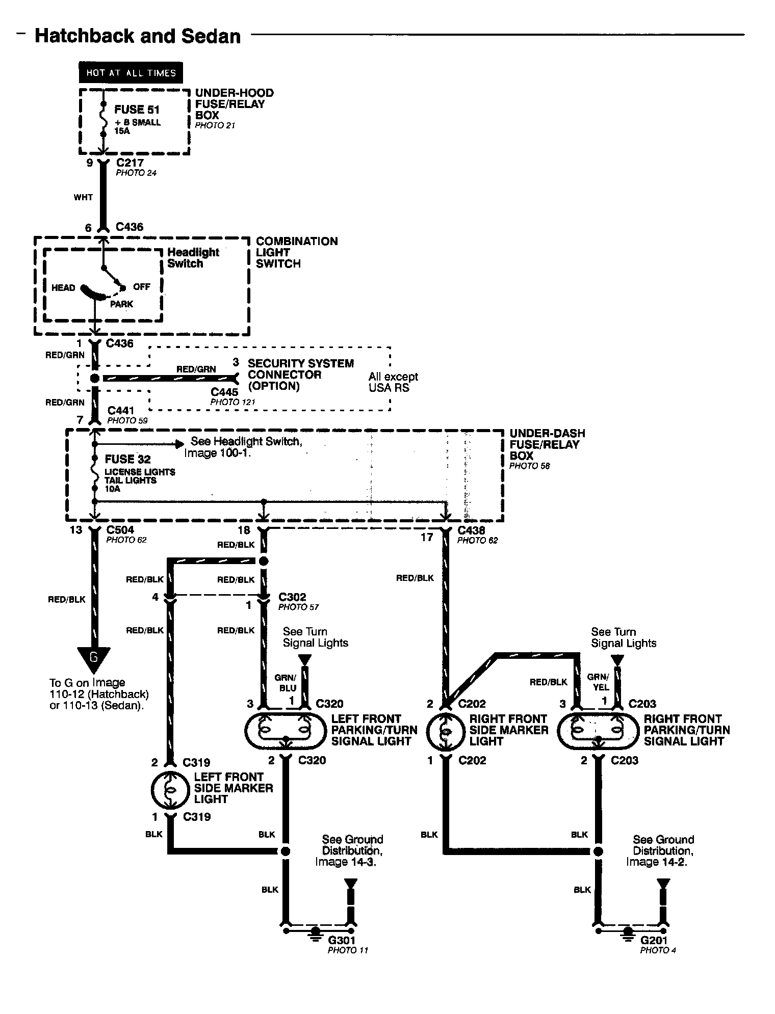 License Lights, Parking Lights, and Taillights (Hatchback And Sedan) Image 110-11: