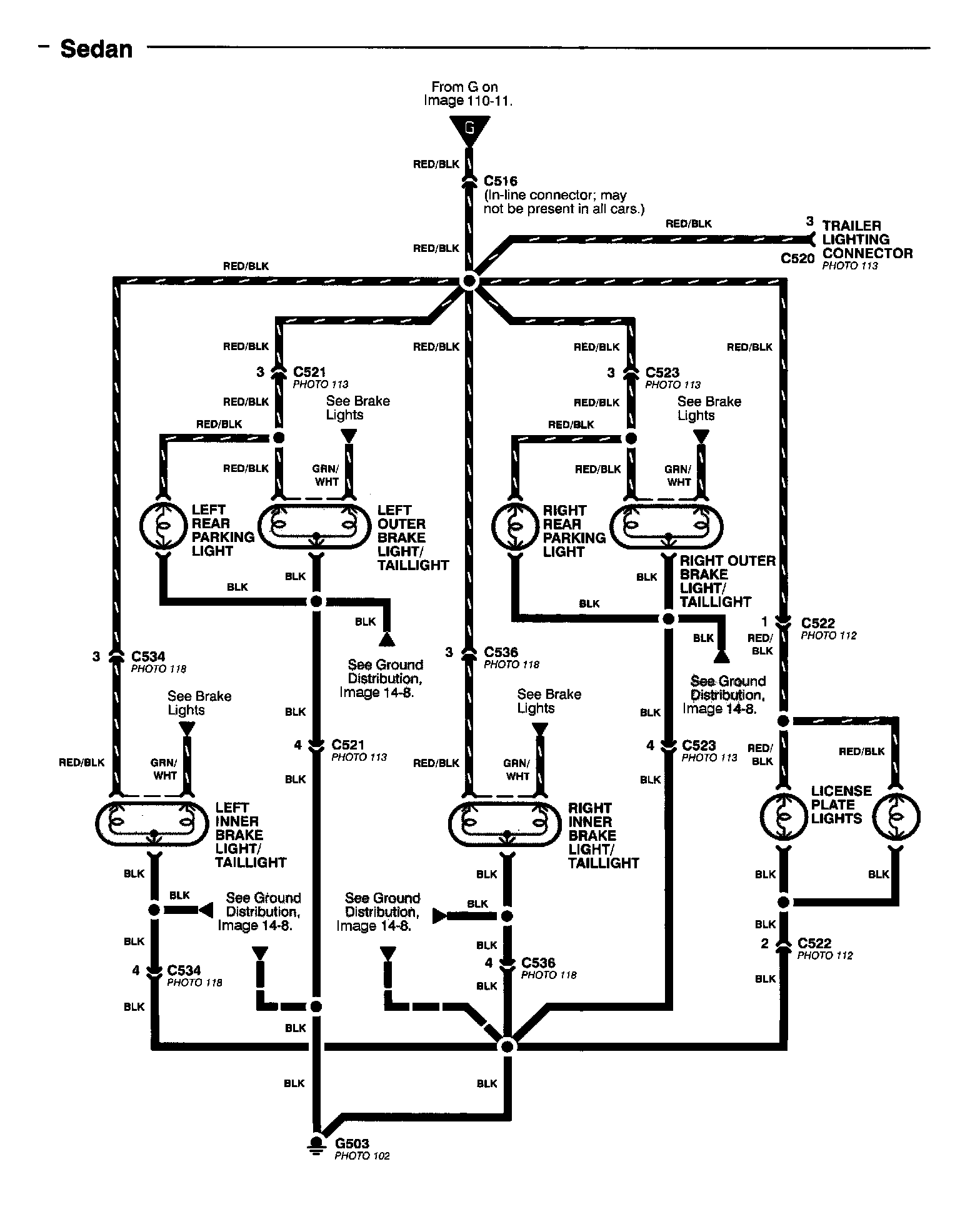 License Lights, Parking Lights, and Taillights (Sedan) Image 110-13: