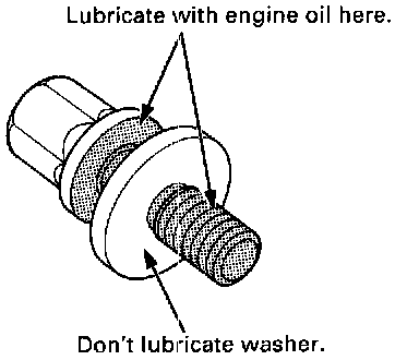 - When reinstalling the bolt, lubricate the threads and flange with engine oil, but don't lubricate the washer and pulley.