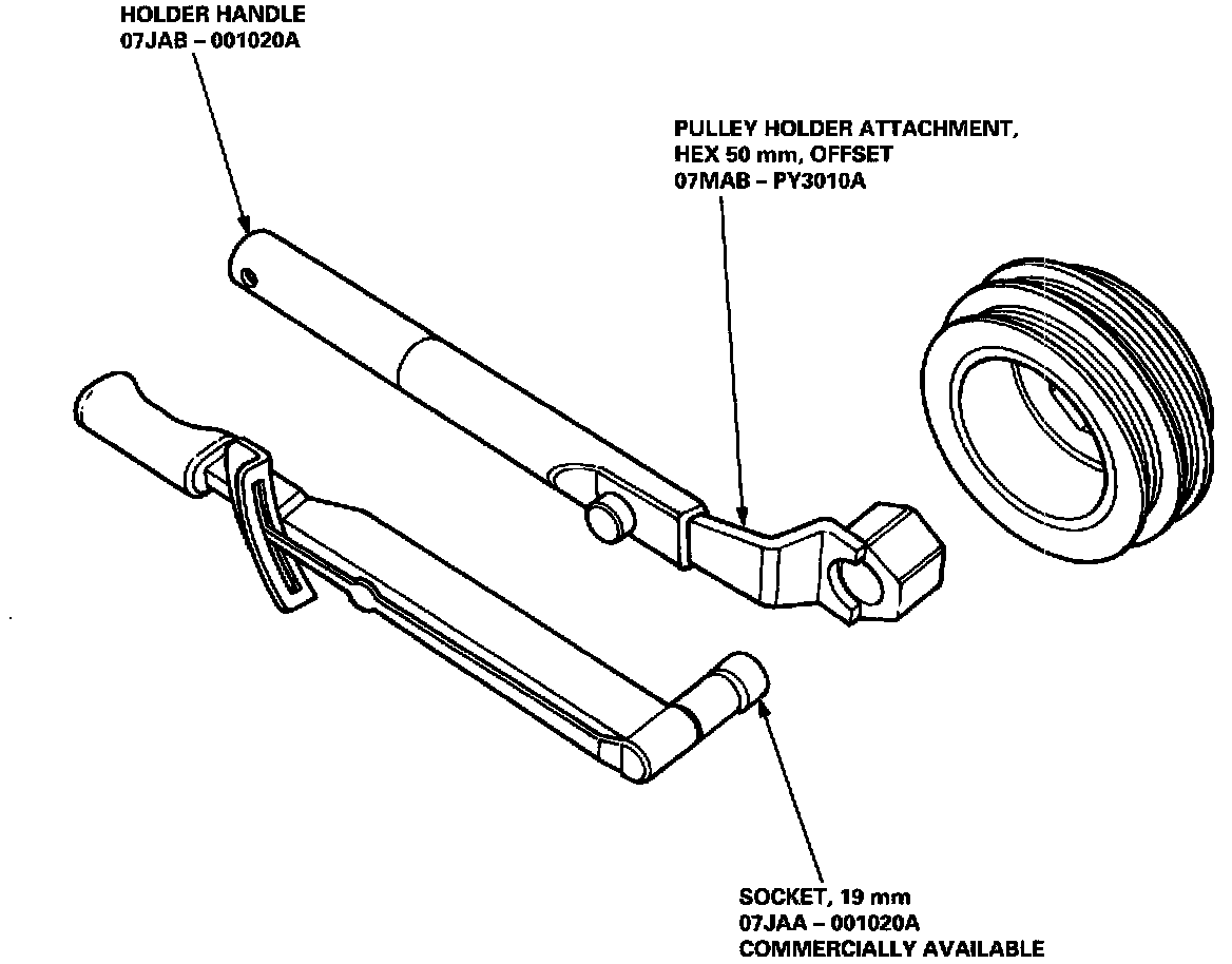 (1) Tighten the pulley bolt to 196 Nm (20.0 kgf.m, 145 ft. lbs.).