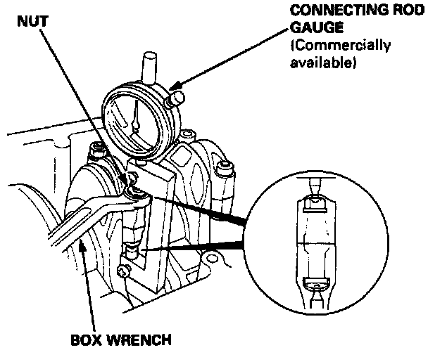 11. Tighten the nut until the connecting rid gauge reads 0.13 - 0.15 mm (0.005 - 0.006 inch).