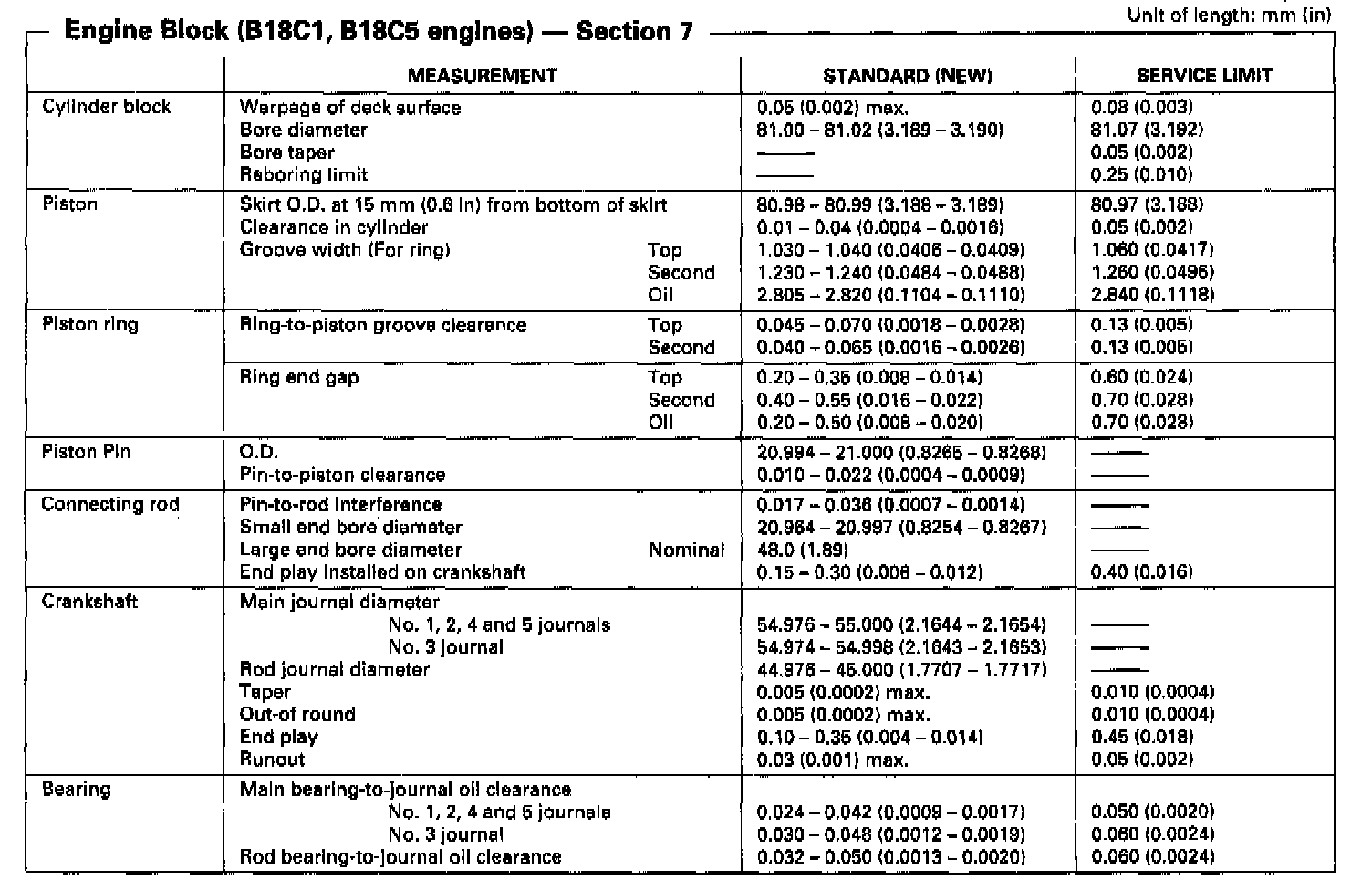 Engine Block (B18C1, B18C5 Engines):