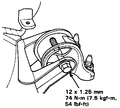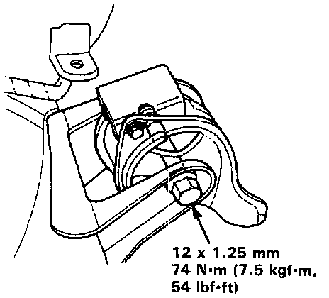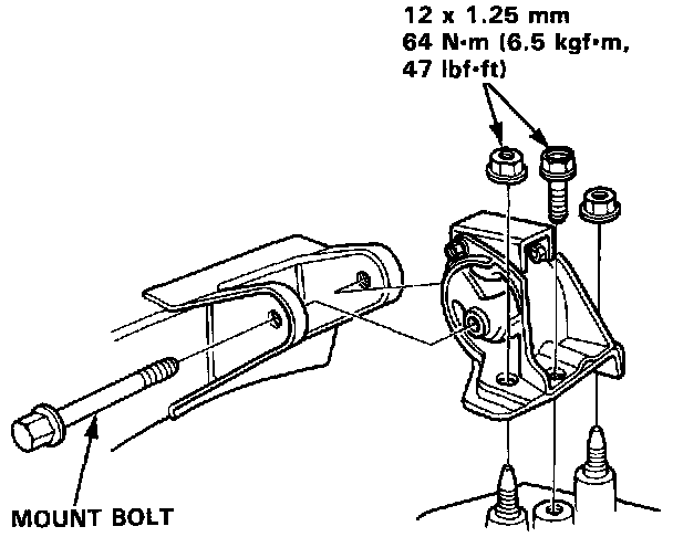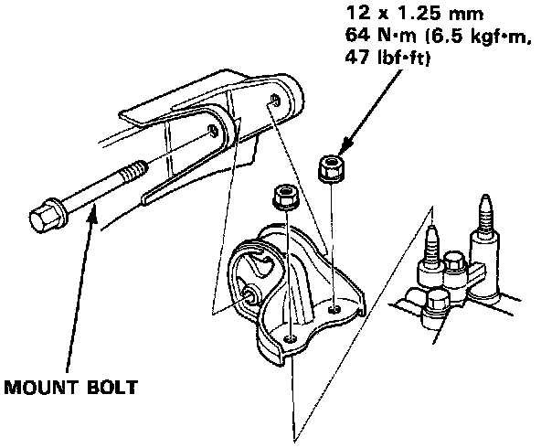 2. Install the engine side mount, then tighten the bolt/nuts on the engine side. Leave the mount bolt loose.