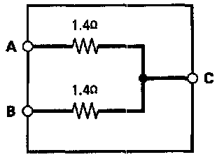 2. Measure the resistance between the resistor terminals (A and B) and the power terminal C.