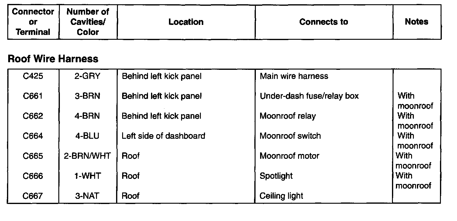 Roof Wire Harness - Index: