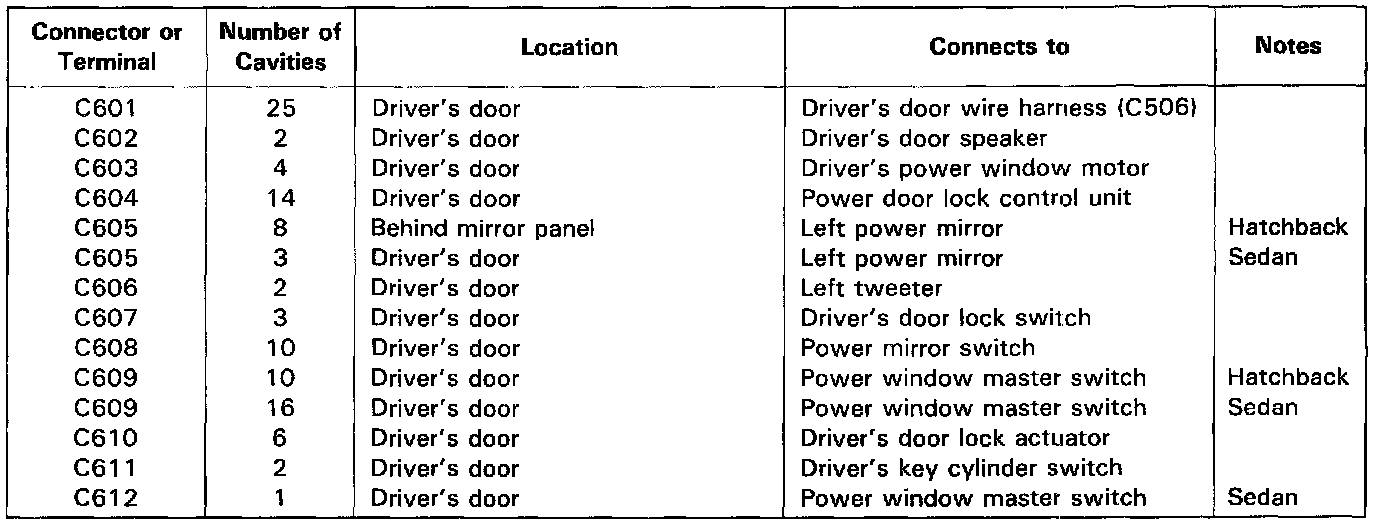Driver's Door Wire Harness (Hatchback):