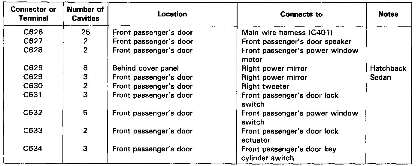 Front Passenger's Door Wire Harness (Sedan):