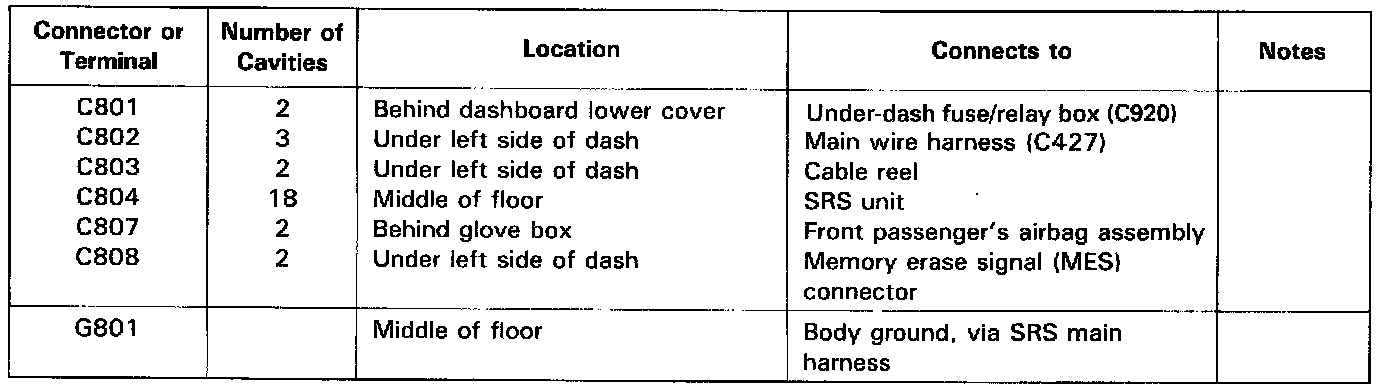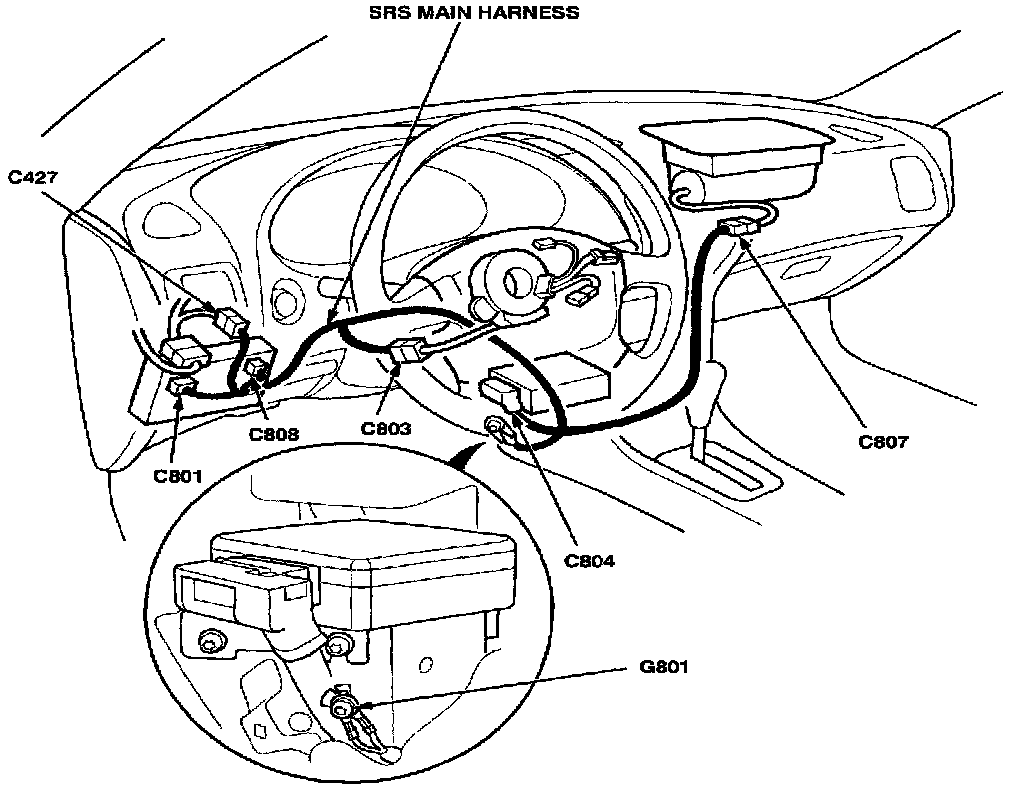 Connector Identification And Wire Harness Routing (SRS Main Harness):