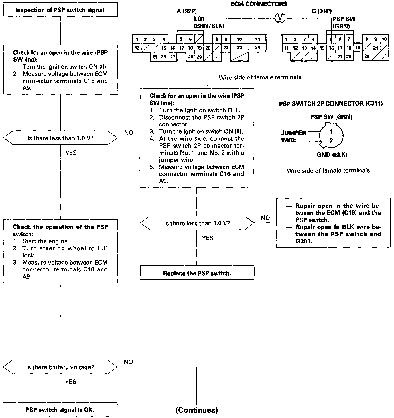 PSP Switch Signal Circuit Troubleshooting