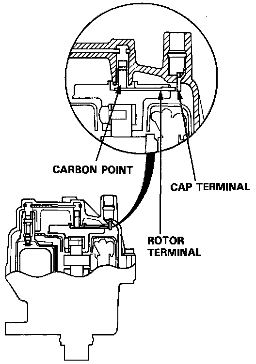 DISTRIBUTOR TOP END / INSPECTION1. Check for rough or pitted rotor and cap terminals.