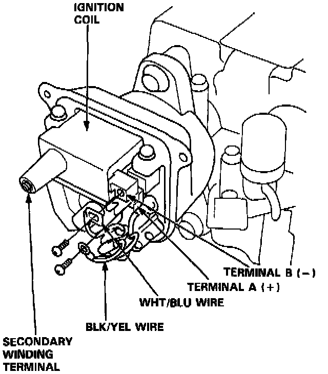 3. Using an ohmmeter, measure resistance between the terminals. Replace the coil if the resistance is not within specifications.