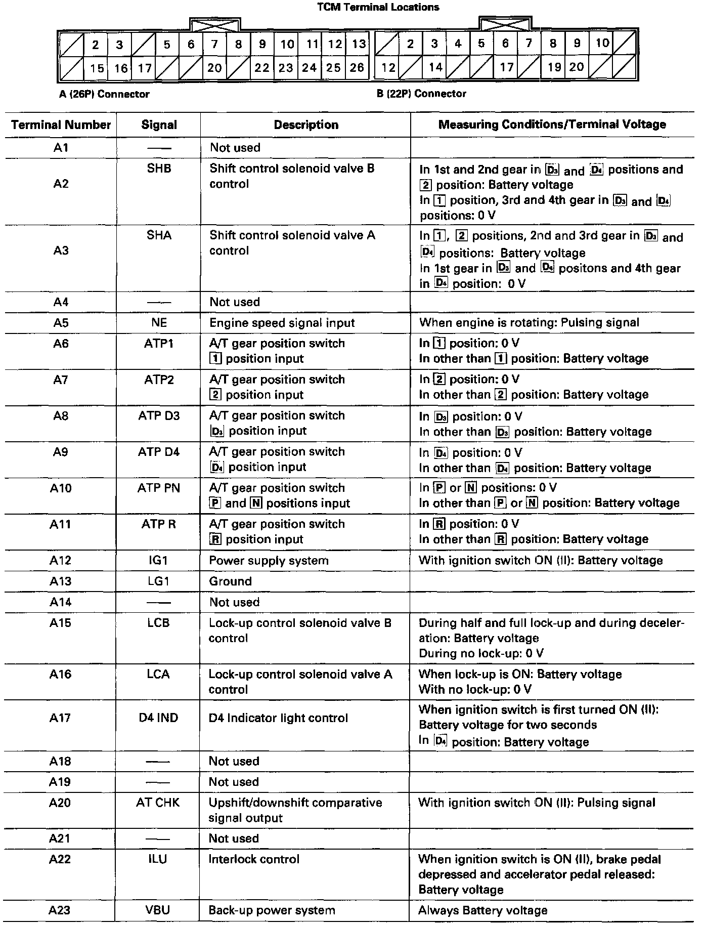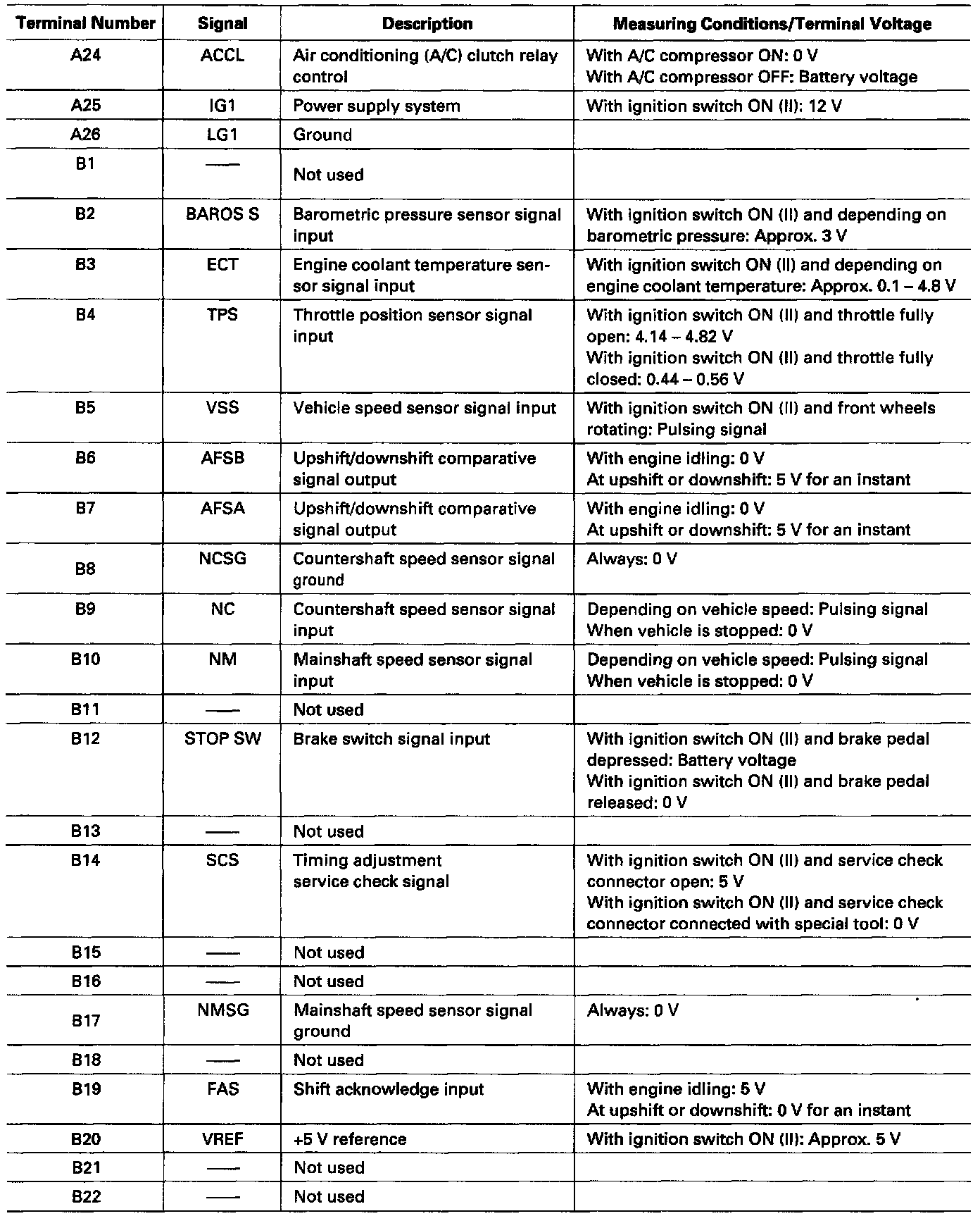 Pinout Values and Diagnostic Parameters