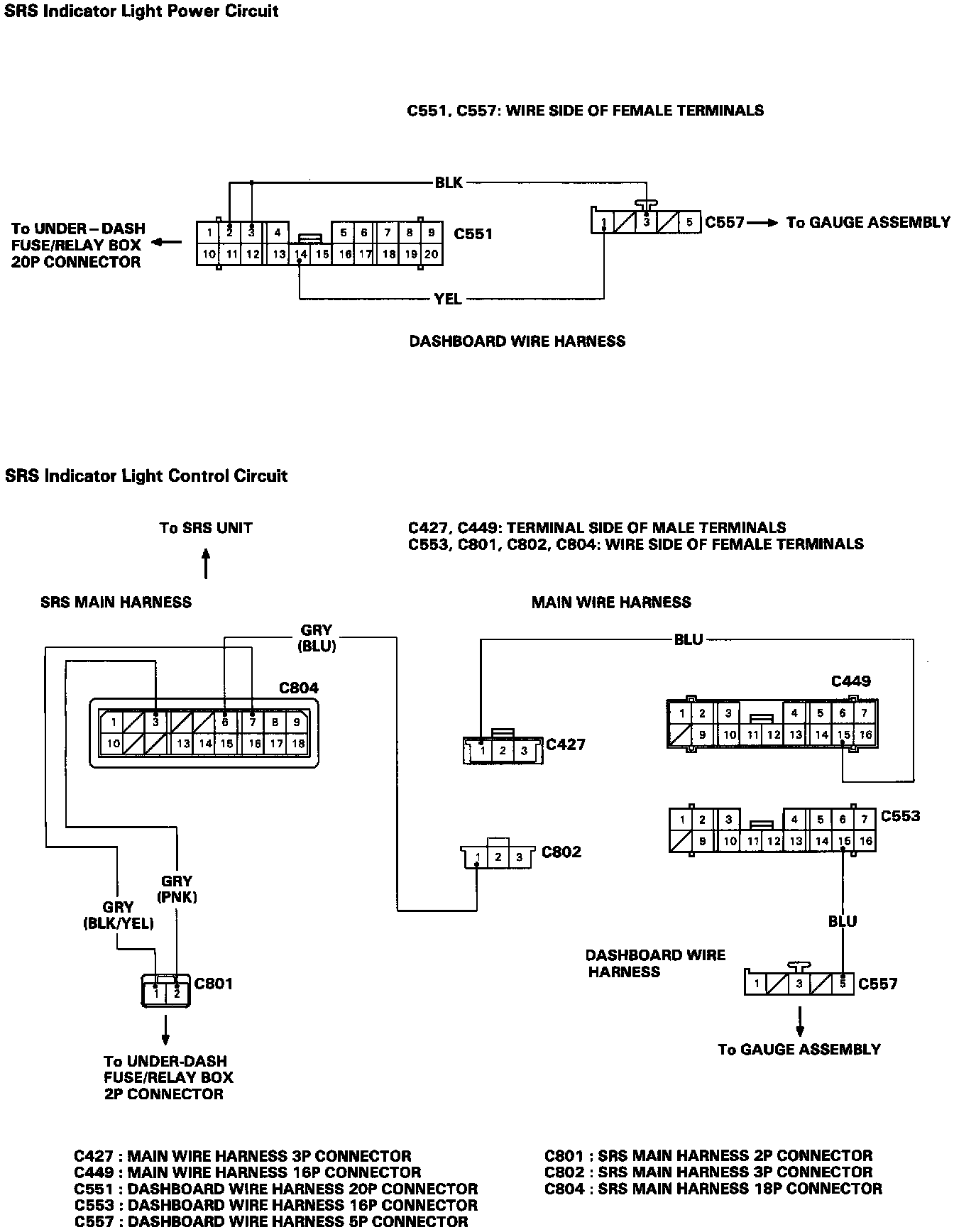 SRS Indicator Light Wire Connections: