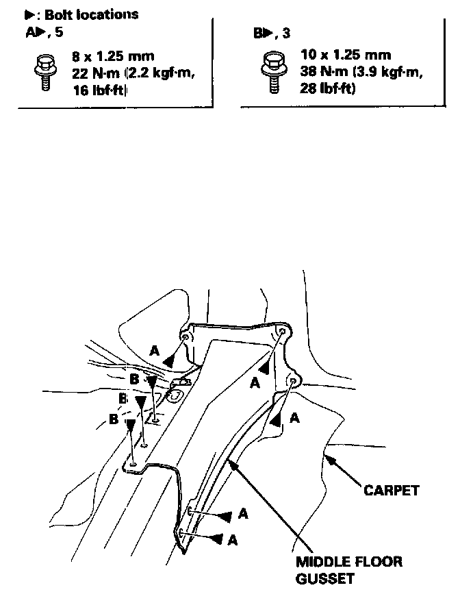 3. Pull back the carpet as necessary, remove the bolts, then remove the middle floor gusset.