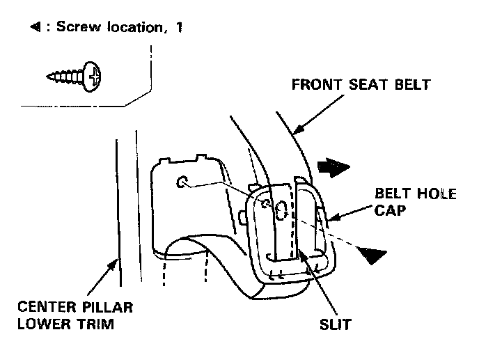 2. Remove the belt hole cap, then slip the front seat belt through the slit in the belt hole cap.