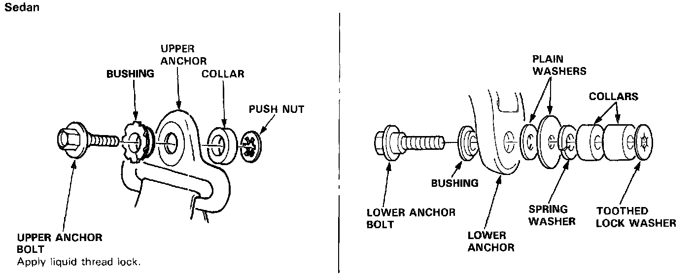 - Make sure you assemble the washers and collars on the upper and lower anchor bolts as shown.