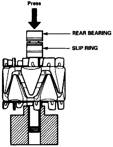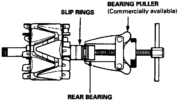 - Make sure the tips of the bearing puller jaws are thin enough to fit between the bearing and the slip rings.