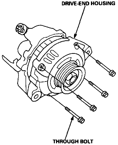 5. Separate the rear housing from the stator/rectifier assembly by removing the four screws and the terminal nut.