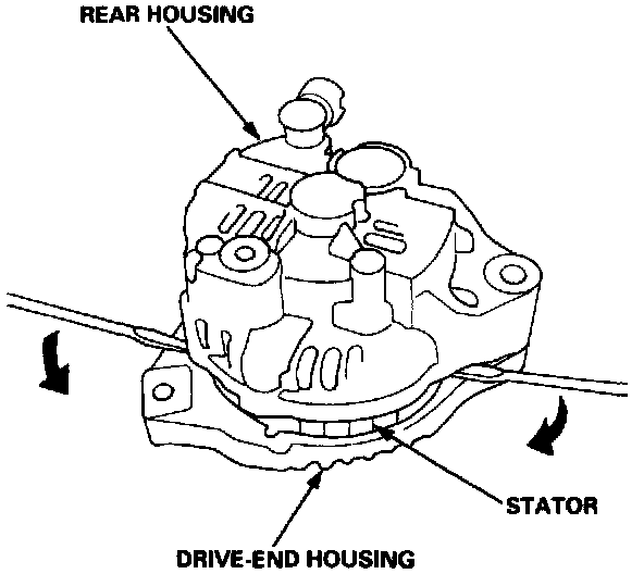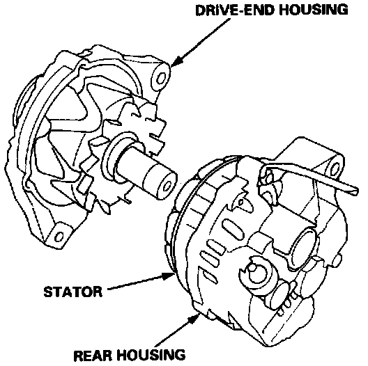 4. Separate the rear housing and drive-end housing with the stator attached to the rear housing.