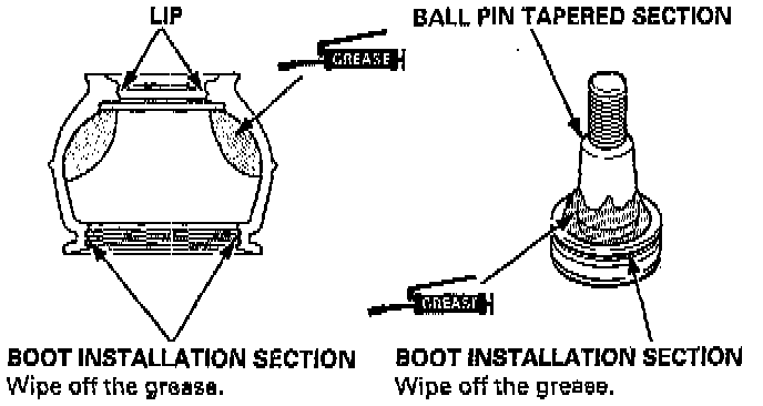 - Keep grease off the boot installation section and the tapered section of the ball pin.